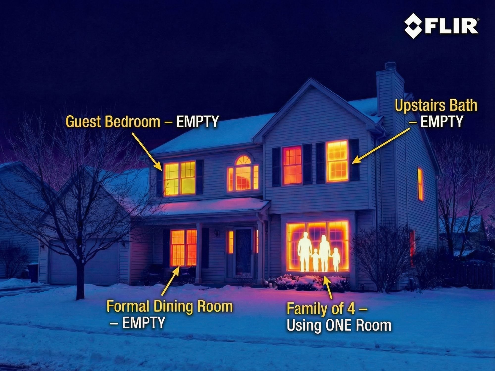 Here’s something most homeowners don’t think about: when temperatures drop and your furnace kicks into high gear, you’re paying to heat every single room in your house – even the ones nobody is using.