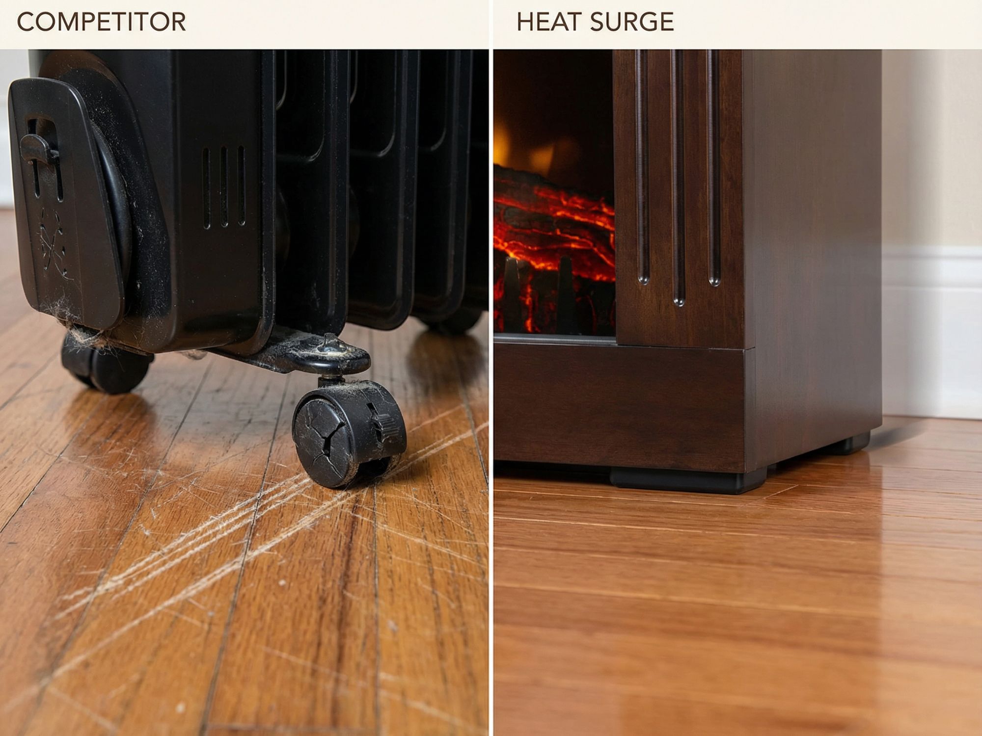 One of the most common complaints about portable heaters? The cheap plastic wheels that break, get stuck, or scratch hardwood floors.