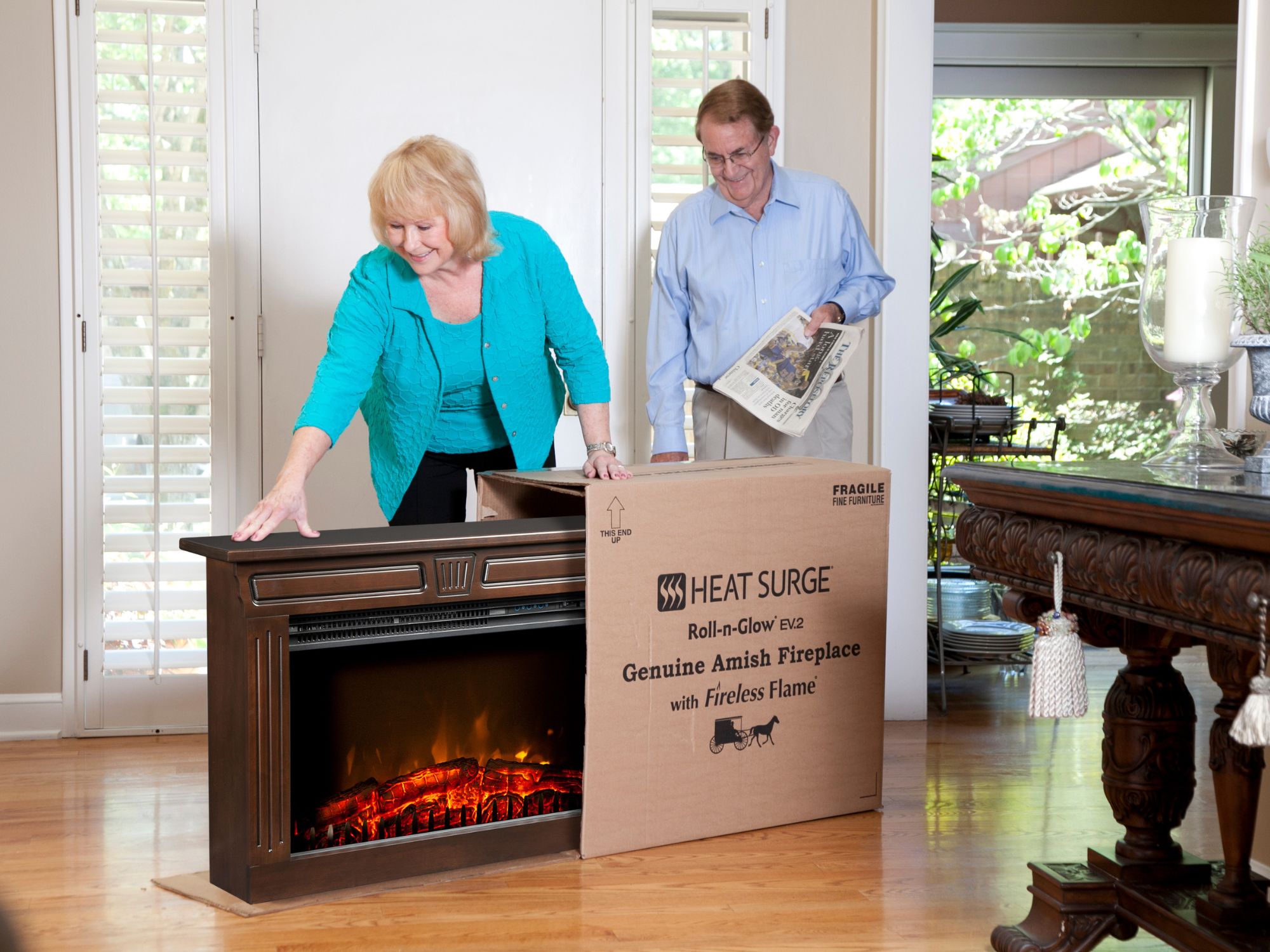 But the Amish Fireplace isn’t just about aesthetics. Inside that handcrafted exterior is proprietary Hybrid-Thermic™ heat technology designed to provide consistent, efficient warmth. The unit also features what Heat Surge calls Instant-Thermic Heat Transfer™ – meaning you feel the warmth almost immediately after turning it on, rather than waiting for a room to slowly heat up.